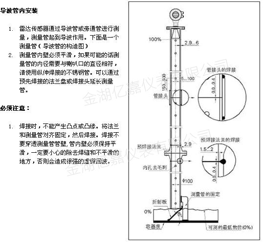 理論上測量達到天線尖端的位置是可能的,但是考慮到腐蝕及粘附的影響,測量范圍的終值應距離天線的尖端至少100mm。