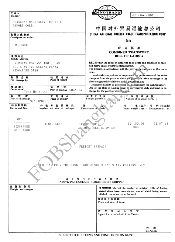 貨代給的單證: